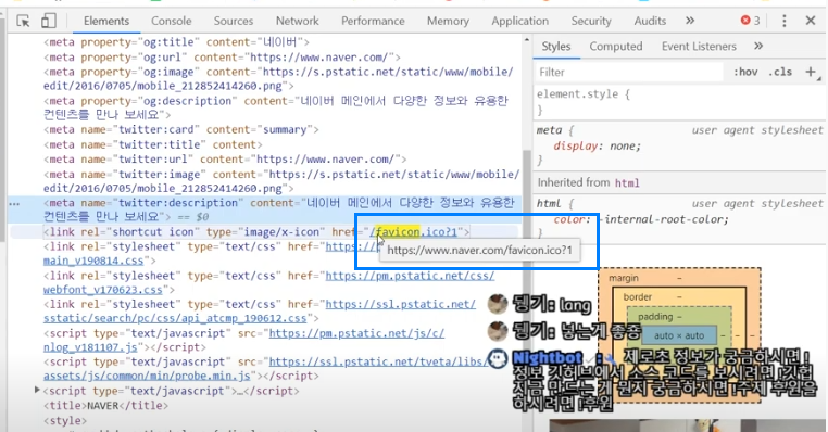 네이버 메인 홈페이지에 들어가서 html구조를 분석해보자.